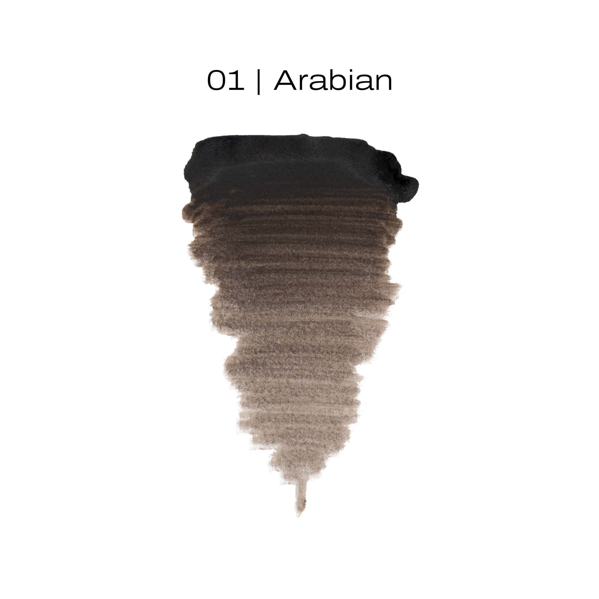 01 Arabian cattura con la sua elegante freschezza, appositamente studiata per i tipi Fitzpatrick 5 e 6. Questa tonalità offre un'alternativa gradita al tradizionale nero – ideale per clienti che cercano un effetto più morbido, tendente al marrone-notte, ad esempio nella zona dell'eyeliner. Il sottotono freddo garantisce un aspetto raffinato e moderno che appare discreto e sofisticato anche su carnagioni più scure.
